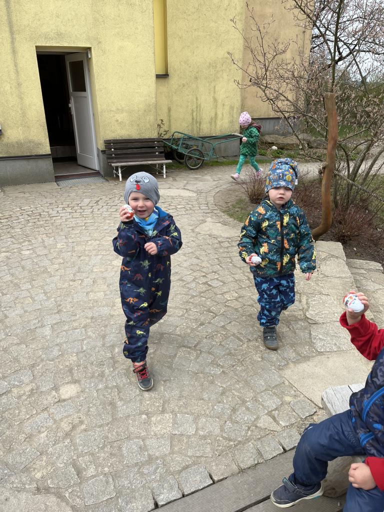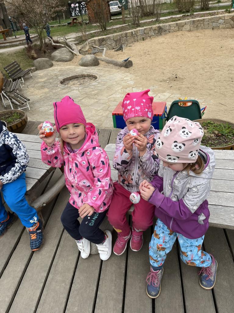 Děti na zahradě MŠ hledaly čokoládová vajíčka.